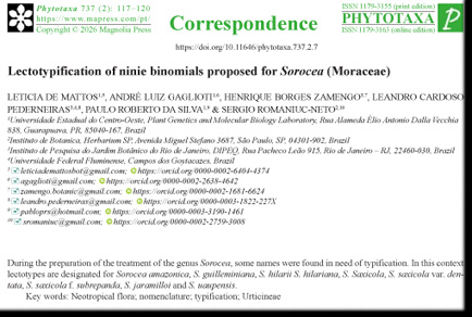 - De Mattos, L., Gaglioti, A.L. & Romaniuc-Neto, S. (2022b) Sinopse Taxonômica de Sorocea (Moraceae). 1. ed. Chisinau: Novas Edições Acadêmicas, pp. 1–201.