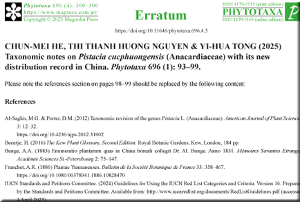 Erratum: CHUN-MEI HE, THI THANH HUONG NGUYEN & YI-HUA TONG (2025) Taxonomic notes on