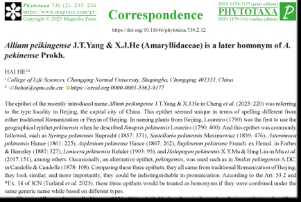 J.T.Yang & X.J.He (Amaryllidaceae) is a later homonym of